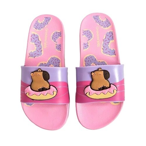 CHINELO INFANTIL GRENDENE CAPIVARA SLIDE ROSA - N.32/33