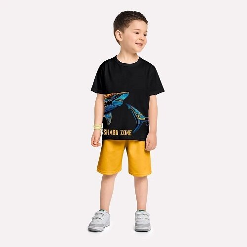 Aventuras cheias de estilo estão garantidas com o conjunto infantil menino Kyly! Inspirado nas cores e na energia do verão, ele traz conforto, leveza e um visual incrível para acompanhar os pequenos em todos os momentos de diversão. A camiseta, confeccion