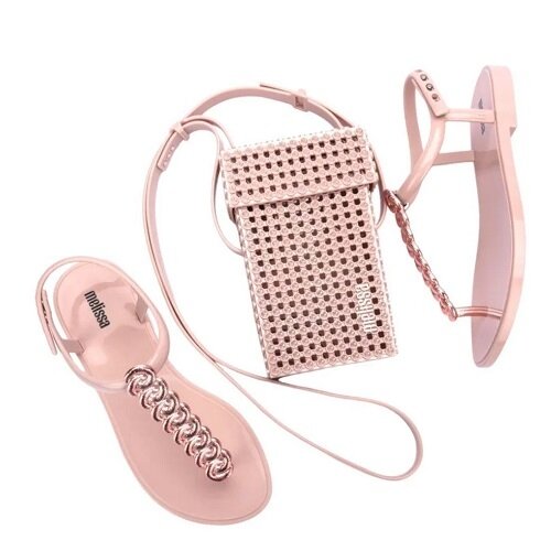Sandália Feminina Rasteira Cromada Melissa Strass