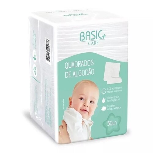 Algodão Quadrado Baby Basic + Care 50un