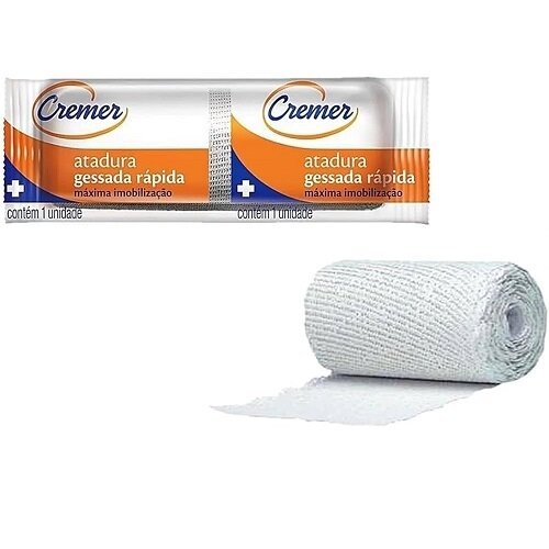 As ataduras gessadas são de imersão e secagem rápida. São confeccionadas em tecido de gaze 100% algodão, impregnadas com gesso coloidal.