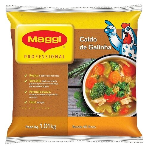 MAGGI® Caldo de Galinha possui sabor intenso, e garante mais rendimento e mais sabor para suas receitas. Sua cor neutra não altera a cor original das preparações. Pode ser utilizado para temperar ou como base para sopas e caldos.