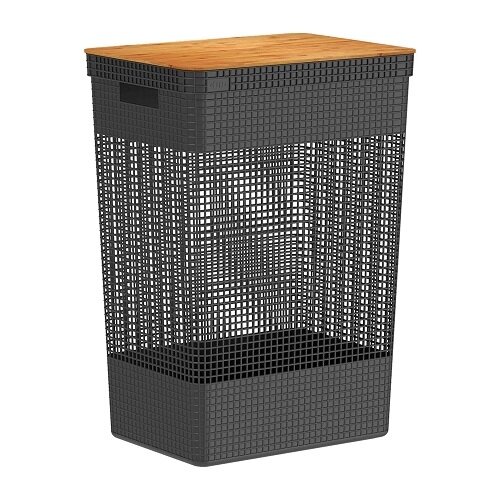 CESTO DE ROUPAS GRID COM TAMPA DE BAMBU 49 L