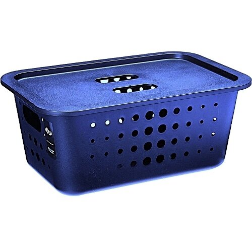 CESTO ORGANIZADOR 29x19,5x12,5cm FECHADO C/TAMPA OU - AZUL MARINHO