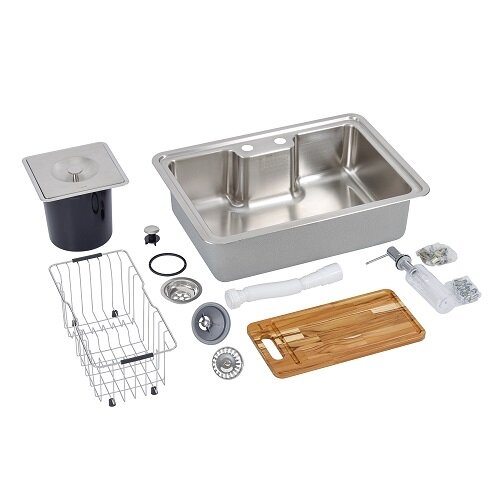 Cuba de Sobrepor ou Embutir Docol Massima 64x44x20cm em Aço Inox Escovado com Acessórios e Lixeira de Embutir 6 L