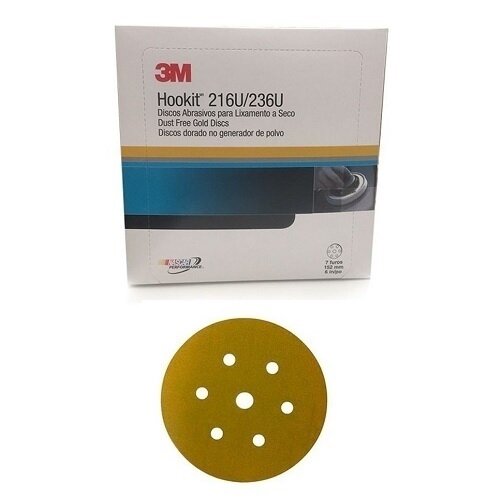 O Disco para Lixamento a Seco 216U proporciona um corte preciso e mais agressivo se comparado com um abrasivo de revestimento fechado de mesmo grão, sem acúmulo de pó no disco. Está disponível em discos de 152mm de diâmetro para substratos que incluem revestimentos transparentes, fibra de vidro, pintura, plástico e base. Resistente a Pó e Detritos. Revestimento aberto significa que os grãos abrasivos do nosso 3M Disco 216U estão posicionados com espaços entre eles para ajudar a evacuar o pó do lixamento e outros detritos para evitar a obstrução do corte dos grãos. O revestimento resistente dos grãos abrasivos também permite que o disco continue cortando mesmo ao lixar tintas e outros materiais que, de outra forma, iriam obstruir o disco e comprometer a capacidade de lixamento. Tudo isso ajuda no aumento da produtividade e na redução de consumo de materiais. Padrão de 7 furos para eliminar o pó. Os discos Hookit se removem de maneira limpa e simples, garantindo uma vida útil maior para o disco e um acabamento consistente.