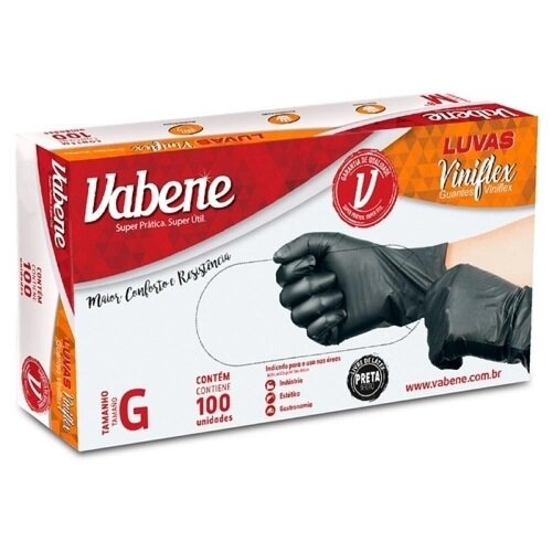 LUVA DESCARTAVEL VABENE VINIFLEX PRETA G 100UN