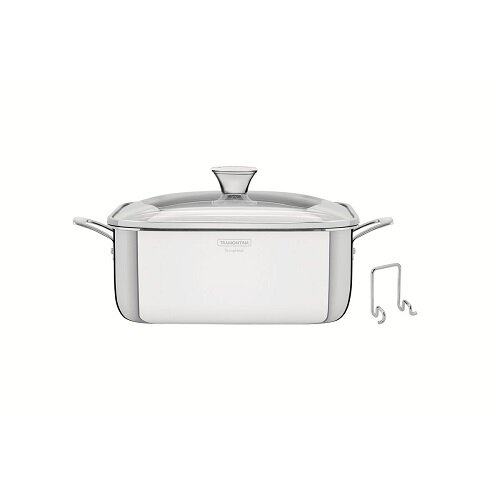 Caçarola Tramontina Grano Quadrada em Aço Inox com Suporte para Tampa Corpo triplo com Alças e Tampa de Vidro 7,3 L