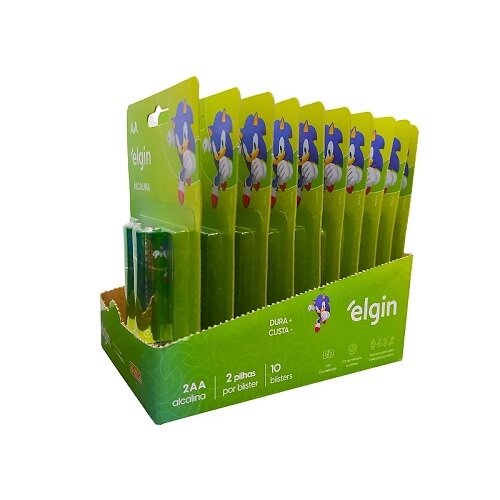 As pilhas alcalinas AA Elgin do mascote Sonic são ideais para brinquedos, controle remotos, lanternas e outros aparelhos que requerem descargas de energia rápidas e fortes. Elas foram aprovadas em todos os quesitos e têm ótima relação custo/benefício, você economiza e ainda conta com pilhas de alta qualidade. Entre 11 marcas de pilhas do mercado avaliadas em testes do INMETRO, as pilhas Elgin apresentaram um resultado excelente na relação custo por hora útil. Além disso, elas são testadas periodicamente por laboratórios credenciados pelo INMETRO, para garantir a qualidade e conformidade com a resolução Conama 401.
