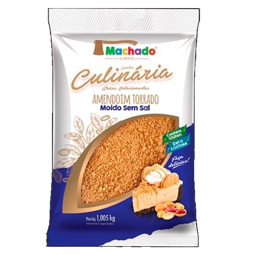 O Amendoim Torrado Moído Sem Sal da marca Machado é um produto de culinária, torrado e despeliculado (sem pele), ideal para confeitaria e preparo de doces como paçoca e recheios. Faz parte da linha de grãos selecionados da Machado Alimentos, oferecendo praticidade, sabor natural e textura fina, com alta qualidade para receitas.