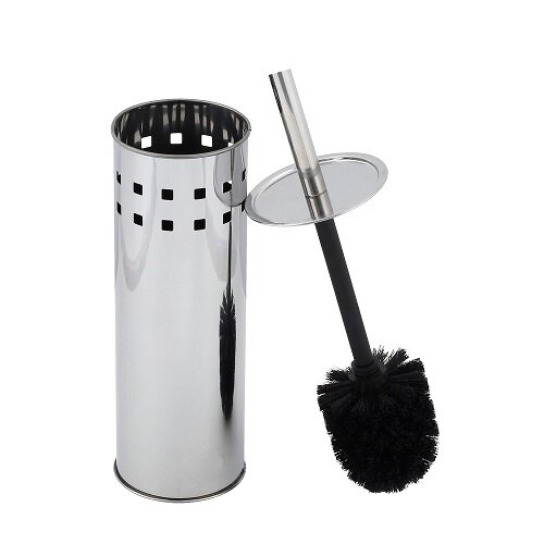 O cabo em aço inox proporciona um toque sofisticado, enquanto as cerdas de nylon são eficazes na remoção de sujeira e manchas, com um diâmetro de 8 cm que permite alcançar todos os cantos do vaso sanitário.