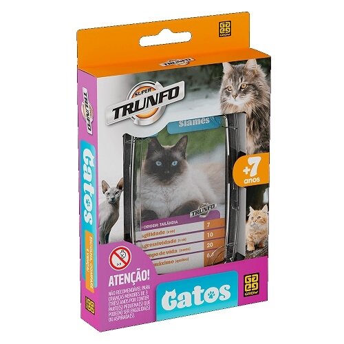 Super Trunfo Gatos traz 32 cartas traz fotos e informações de simpáticos gatinhos para uma disputa superdivertida!