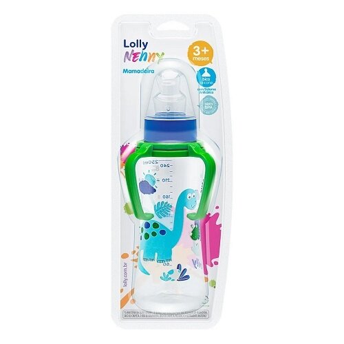 Mamadeira Lolly Viva Com Alças Ortodôntica 250ml Azul/Verde