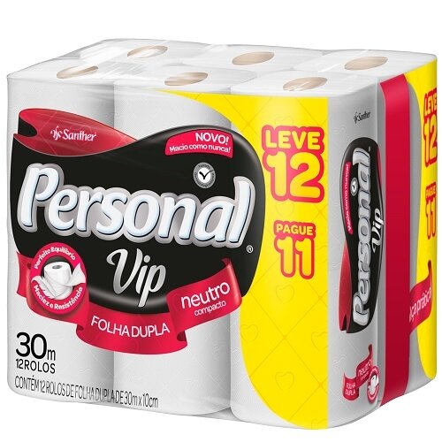 Papel Higiênico Folha Dupla Neutro Personal Vip Pacote 30m Leve 12 Pague 11 Unidades