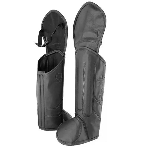 - Costura eletrônica, sem proteção de joelho, proteção 3 talas em aço interligadas até o tornozelo (tala inteiriça), com fechamento em velcro;