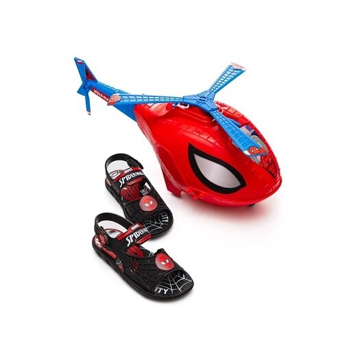 As fronteiras da imaginação vão ser ultrapassadas com o promocional Homem Aranha Sky Operation. Com rodas e hélices funcionais, lançador de dardos no topo, o helicóptero é o passatempo perfeito para os pequenos. A parte inferior do helicóptero, que também é a embalagem do produto, traz as frases "Amigão da Vizinhança" e "Homem Aranha" em braile.Para sandália, o visual explorado através de relevo na tira principal e estampa na sola, foi o elemento exclusivo do super-herói: teias. O fechamento facilitado otimiza o calce e a assinatura do personagem e da licença Marvel garante personalidade para este promocional.