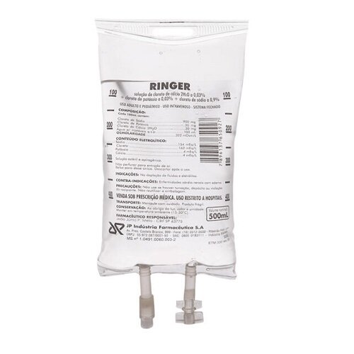 Solução injetável de cloreto de sódio + cloreto de potássio + cloreto de cálcio + lactato de sódio.
