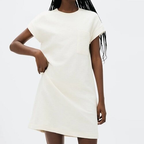 Vestido Básico Curto Texturizado Com Bolso - Creme
